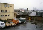Vinterbild från bakgården på Gamla Fabriken, AB Pumpindustri, Mölndal, Krokslätt. Gamla Fabriken med omklädningshytter