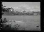 Vy över Muonioälven och Karesuando kyrka, Lappland.