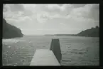 Man i hatt och badrock, rökandes pipa, poserar på en klippa. 61/1941 Konrad Elméus Nm 44