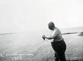 Man fiskar i Fyrisån vid Ärna bro, Ärna, Uppsala april 1931