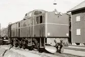Bilden tagen sommaren 1903, dvs ett drygt halvår innan SAJ startade trafiken. SAJ - rallarna vid Svarvarebacken, Ljungstorp sommaren 1903 med loket F.U. von Essen, köpt 1902 som byggnadslok från Hjo-Stenstorps Järnvägsaktiebolag. Loket byggdes 1875 av Kristinehamns mekaniska verkstad, såldes av SAJ 1905 till DONJ och hamnade senare hos Sulfit AB Ljusnan innan det skrotades 1930.