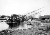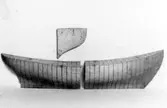 Skrivet på vidhängande papper: Fören till en kravellbåt, med spanten resta. Fotograferat av: G.B.G. museum Fotot är taget: 1930