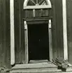 Skioptikonbild med motiv av port till hus i Helsingborg eller Helsingör. Bilden har förvarats i kartong märkt: Helsingborg- Helsingör 1903.