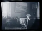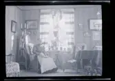 Pokaler och medaljer visas upp på en vägg i ett rum.