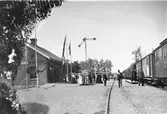 Stationen öppnades för allmän trafik 1908. Upphörde 1939. På bilden syns landsbrevbärare C.V. Bengtsson, stationsföreståndare O. Carlsson och elev Efraim Kjellström.