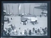 Algutsrums marknad. Små stånd, här ett med rakvatten med mera - uppslagna mitt i gamla marknadsgatan.