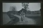 "Ruth Gustavsson." En kvinna cyklar på en grusväg.