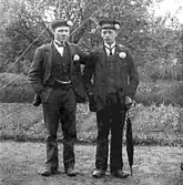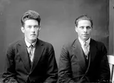 Text till bilden:"Tre unga män , två med nothäften i sina händer".