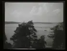 Ön Lilla Brudholmen. På en klippa ligger en stuga, i förgrunden ligger en båt. Fotografens förteckning/ anteckning: 568/1 Trenter Stieg Sommar-Gåtebo. Tagning ateljén.
