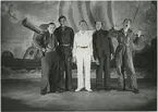 "Vårknas 1948" "Teater i Folkets hus anordnad av Örlogsvarvets arbetare. Foto Lars Johansson (Reso Lasse) I mitten i vitt."