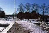 Bilden visar transportarbetare som har tagit uppställning med sina fordon framför brandkasernen på Karlskrona Örlogsvarv.