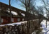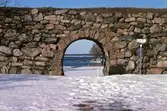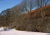 Denna reproduktion av en akvarell föreställer en panorama av Karlskronas örlogsvarv på Lindholmen omkring 1780.