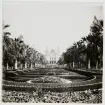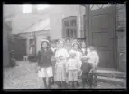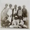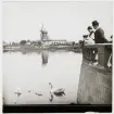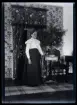 "Moder Svea" Reprofotografi. Kvinna poserar med ett lejon.