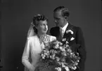 Brudparet Bertil Thorburn och Gerd Sanne med brudnäbbar framför Morlanda Säteri