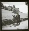 1717/B Rom. En man och en pojke kommer körandes häst/åsna och kärra.