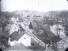 Enligt medföljande noteringar: "Fabrikssamhälle omkring 1930." Uppgifter från HBF: "I bakgrunden fabriksområdet, till höger Stale. Fotografen har stått på Hedeberget."