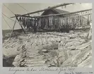 "Långorna torkas. Mollösund Juli 1899". Fisk hänger och ligger på tork ute på skärgårdsklippor.
