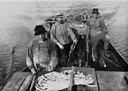 Sundsbro flottarlag 1916 under arbete invid Hjorteds kyrka.