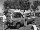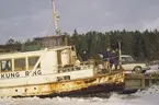 Gammal, frånställd Anglia i skogen på Vindö. Detalj.