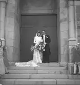 Brudparet Bertil Thorburn och Gerd Sanne med brudnäbbar framför Morlanda Säteri