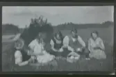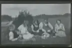 Två kanotister på utfärd i skärgården. I förgrunden lagar Ragnar Högborg mat på ett stormkök. I bakgrunden en FKI-kamrat (namn okänt) med lådkamera i handen.