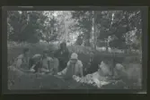 Från R C Andersons och H Lumbs färd mellan Kristiania och Stockholm i kanoten "Moth". Knoten vilar på stenar i en fors, i bakgrunden en pojke.