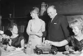 "Parisiskorna" Mona Schüler och Inger Rydestad expedieras av Henry Djupström.