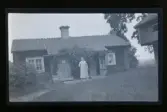"Gryt, Gimmersta Hulda Gustafsson sömmerska." En familj framför sitt hus.