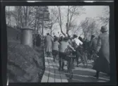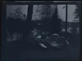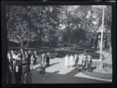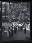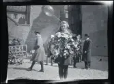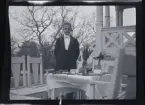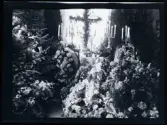 Leonarth Morthensen bland uppvaktningsbuketter blommor.