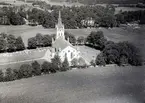"Roos handelsträdgård vid Kyrkogårdsvägen." Odlingar med växthus i bakgrunden och en funkisvilla.