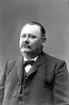 Porträtt av en tunnhårig man med polisonger och mustasch. Bröstbild.
