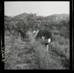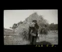 507 B Ultuna. Åkern skördas. En pojke har stannat till på vägen med sin cykel och tittar på.