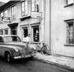 Skara. Blads speceriaffär numera Turistbyrå. Taget mot öster, april 1964 från Biblioteksgatan.