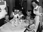 "Stor kontingent finska barn till Upsala i går" - finska flyktingbarn togs om hand på Lottakårens lokal, Uppsala maj 1942