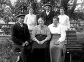 FEM UNGDOMAR SITTANDE I GRÄSET.
