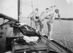 G. H. Engblom med fru vid Skanskobben, Sandhamn