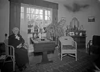 "Fjorton grånade prästänkor har ordnat sina tillhörigheter i de trivsamma, ljusa bostäderna" - en av de boende har besök av Stiftelsen Frideborgs hemsyster, Sysslomansgatan 35