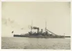 Vykort av pansarskepp, publicerat av Föreningen Armé och Marinfilm, stämplat "Minne från Örlogsflottans Ungdomsdag 19 8/9 29".