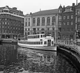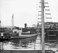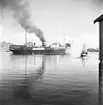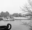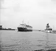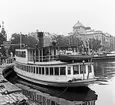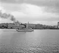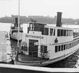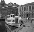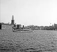 Foto i svartvitt från omkring 1965 visande passagerarmotorfartyget Ilmatar av Helsingfors, under gång på Stockholms ström.
