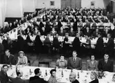 Posttjänstemännens Förenings (PF) Allmänna möte öppnas i rådhushallen i Malmö den 23/8 1970. (Se reportage i Tidningen PS nr 9/1970). Två representanter för PF:s nya medlemsgrupp, A-stationsmästare Folke Högman, Partille (t.v.) och Bror Landin, Malmö.