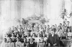 Prästmöte i Växjö, augusti 1902, med biskop N.J.O.H. Lindström i spetsen. Fotot taget utanför Växjö läroverk.