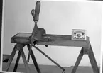 Ekvaliseringsmaskin eller mindre utdrivningsmaskin. Använd för utdrivning av dukter till tågvirke. Maskinen är troligen tillverkad på Karlskronavarvet i slutet på 1800-talet.
