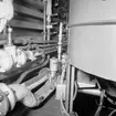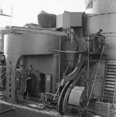 Jagaren Södermanland 1958 På sin jungfrufärd anländer jagaren till Strängnäs. Här har fartyget just passerat Strängnäsbron och är på väg mot Ångbåtsbron.