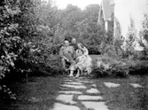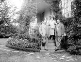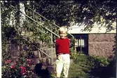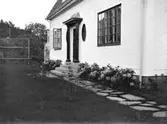 Portal på Helgonabacken 6 i Uddevalla. Fotografi från 1940-talet. Elly Kristiansson heter kvinnan.