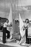 "Stockholm 30.7 1943 Sandhamnsregattan. Två kuttersmycken, från vänster Fru Dagmar Detthoff och Fru K. Frunk."