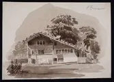 "Berne." Ett schweiziskt châlet. Tuschlavering av Fritz von Dardel, 1832