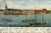 Text på kortet: "Hamnbild från 1891 av G. Åberg. På södra sidan den gamla repsl. banan".