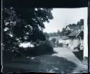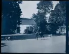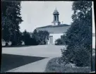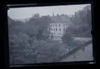 Vy över trädgård. Naturhistoriska riksmuseet i bakgrunden (?)