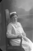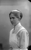 Porträtt av en kvinna i sjuksköterskeuniform.