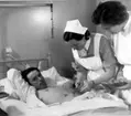 Den dagliga vården på salen ges av syster Marianne och biträdena Gun och Siv. Från utställningen "Falköping i bild" 1952.